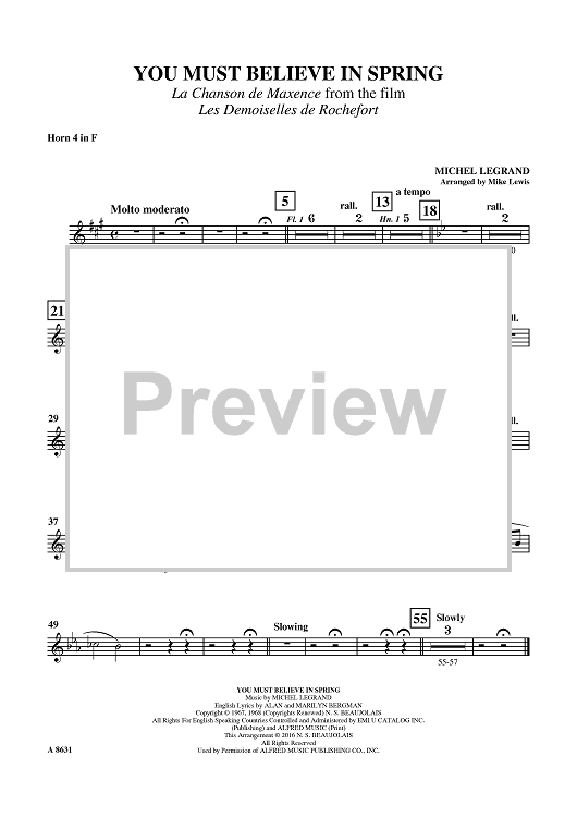 Digital Sheet Music for You Must Believe in Spring - Horn 4 in F by Michel LeGrand, Mike Lewis scored for Full Orchestra; id:462339