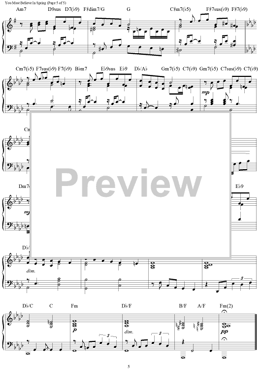 Digital Sheet Music for You Must Believe In Spring by Michel LeGrand, Alan Bergman, Marilyn Bergman, Brent Edstrom scored for Piano Solo; id:463822