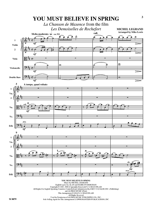 Digital Sheet Music for You Must Believe In Spring - Score by Michel LeGrand, Mike Lewis scored for String Orchestra; id:459444