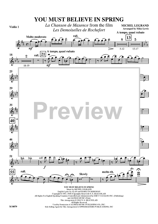 Digital Sheet Music for You Must Believe In Spring - Violin 1 by Michel LeGrand, Mike Lewis scored for String Orchestra; id:459445