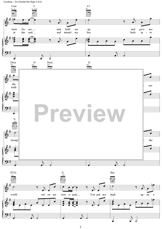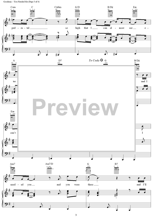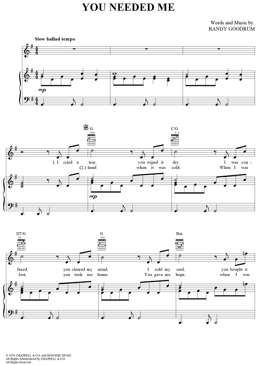 Digital Sheet Music for You Needed Me by Randy Goodrum, Anne Murray scored for Piano/Vocal/Chords; id:286363