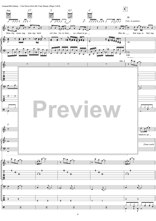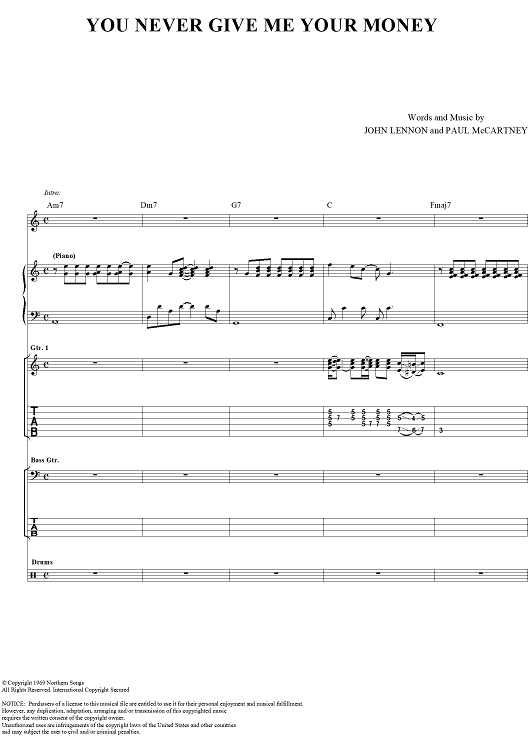 "You Never Give Me Your Money" Sheet Music by The Beatles
