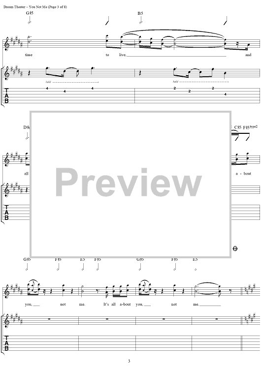 Digital Sheet Music for You Not Me by John Myung, Michael Portnoy, Derek Sherinian, Desmond Child, Dream Theater, John Petrucci scored for Guitar Tab/Vocal; id:109801