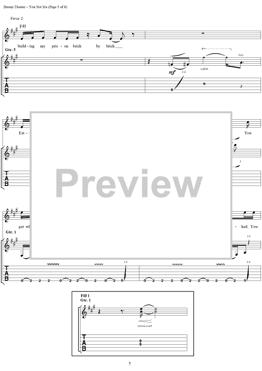 "You Not Me" Sheet Music by Dream Theater