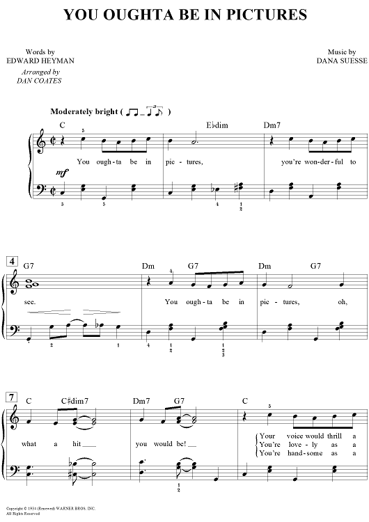 Digital Sheet Music for You Oughta Be in Pictures by Dan Coates, Edward Heyman, Dana Suesse scored for Easy Piano/Vocal/Chords; id:456681