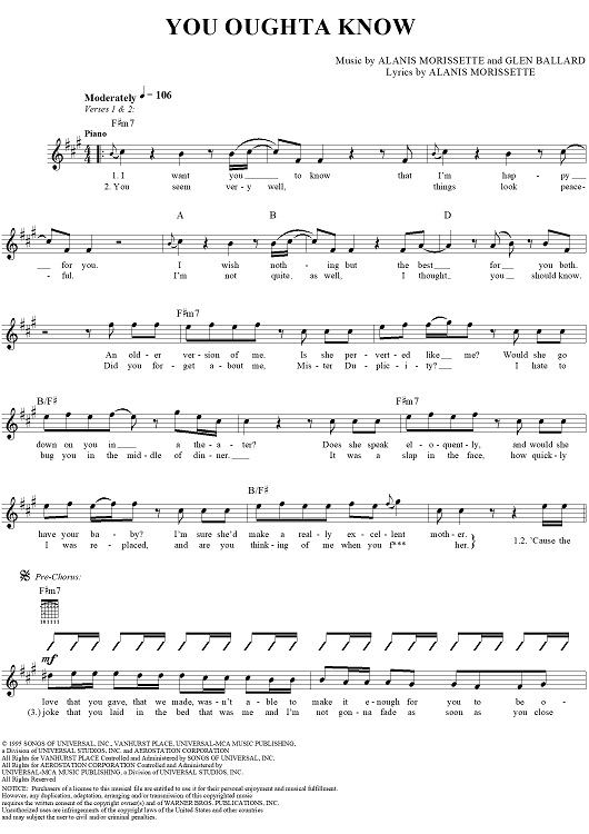 "You Oughta Know" Sheet Music by Alanis Morissette