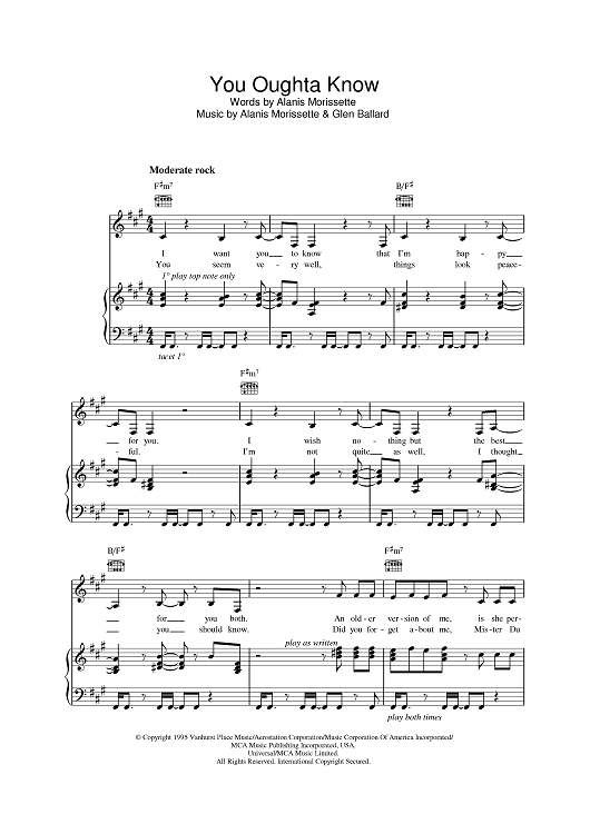 Digital Sheet Music for You Oughta Know by Glen Ballard, Alanis Morissette scored for Piano/Vocal/Chords; id:387705