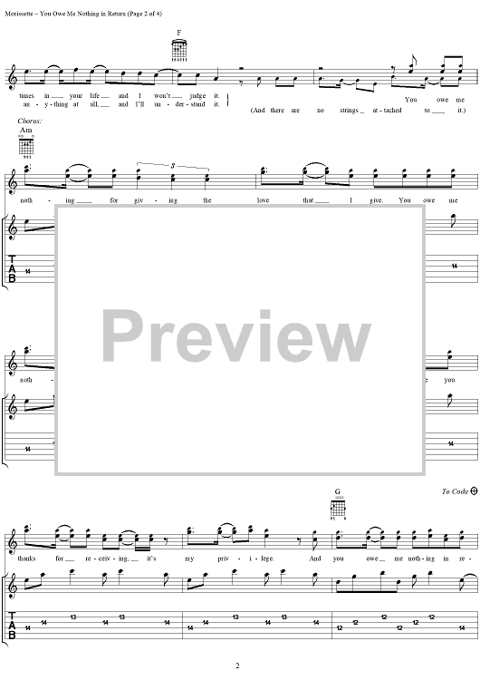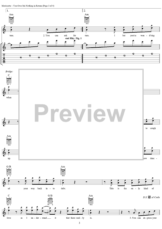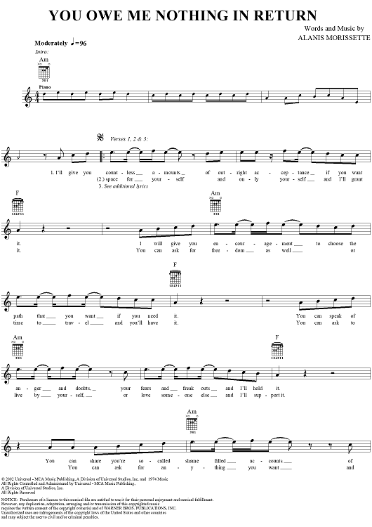 "You Owe Me Nothing in Return" Sheet Music by Alanis Morissette