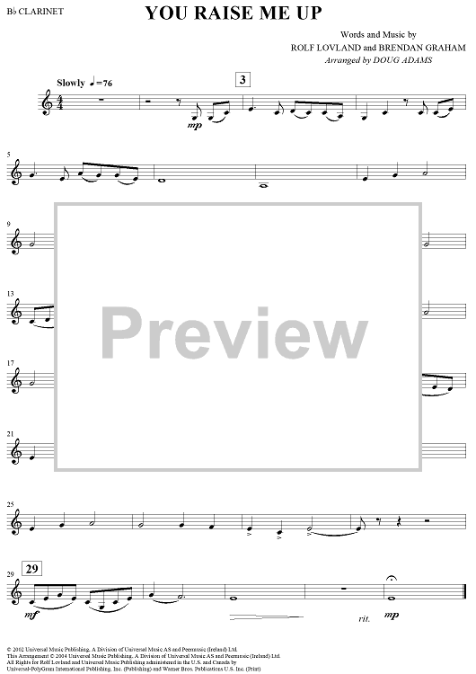 Digital Sheet Music for You Raise Me Up - Clarinet in B-flat by Doug Adams, Rolf Lovland, Brendan Graham scored for Concert Band; id:307304