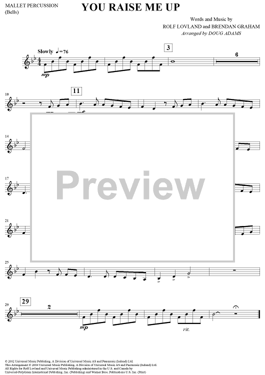 Digital Sheet Music for You Raise Me Up - Mallet Percussion by Doug Adams, Rolf Lovland, Brendan Graham scored for Concert Band; id:307313