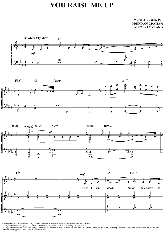 Digital Sheet Music for You Raise Me Up by Rolf Lovland, Josh Groban, Brendan Graham, Slick Rick, Secret Garden scored for Piano/Vocal/Chords; id:396922