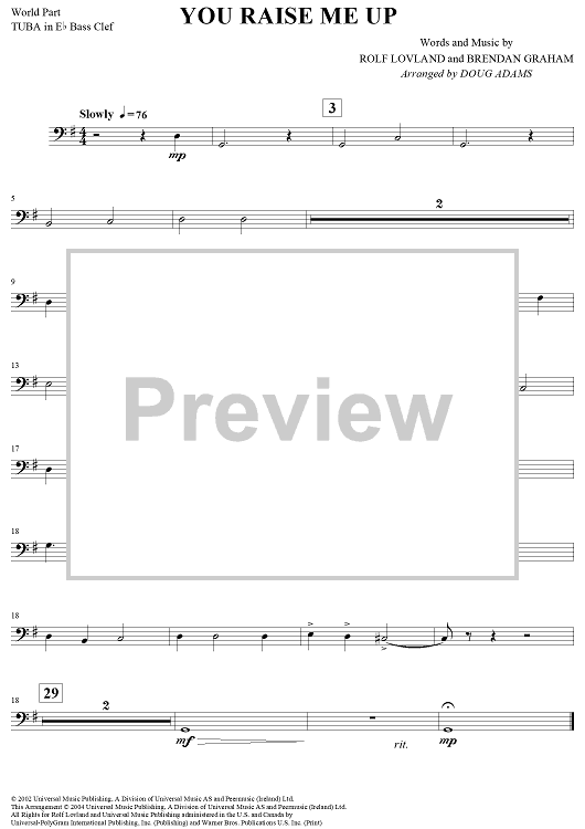 "You Raise Me Up - Tuba in E-flat BC" Sheet Music by Rolf Lovland