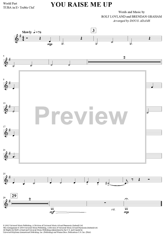 "You Raise Me Up - Tuba in E-flat TC" Sheet Music by Rolf Lovland