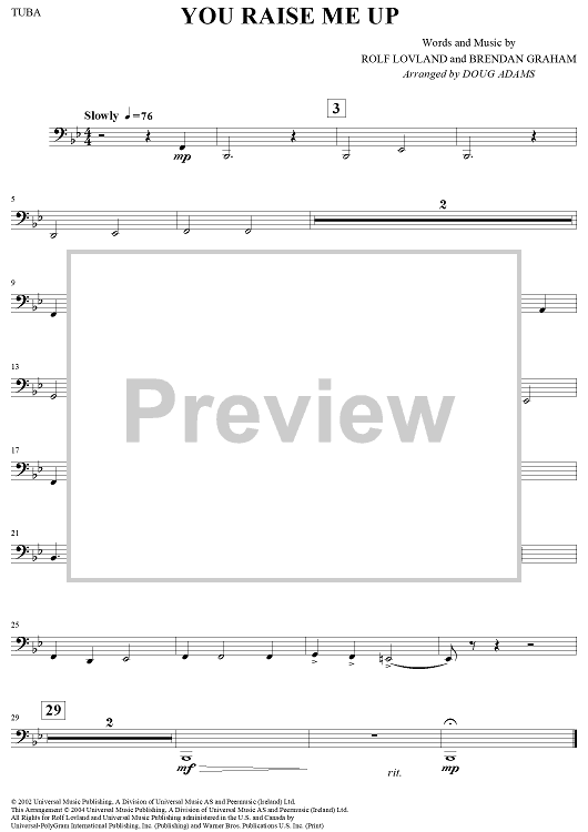 Digital Sheet Music for You Raise Me Up - Tuba by Doug Adams, Rolf Lovland, Brendan Graham scored for Concert Band; id:307312