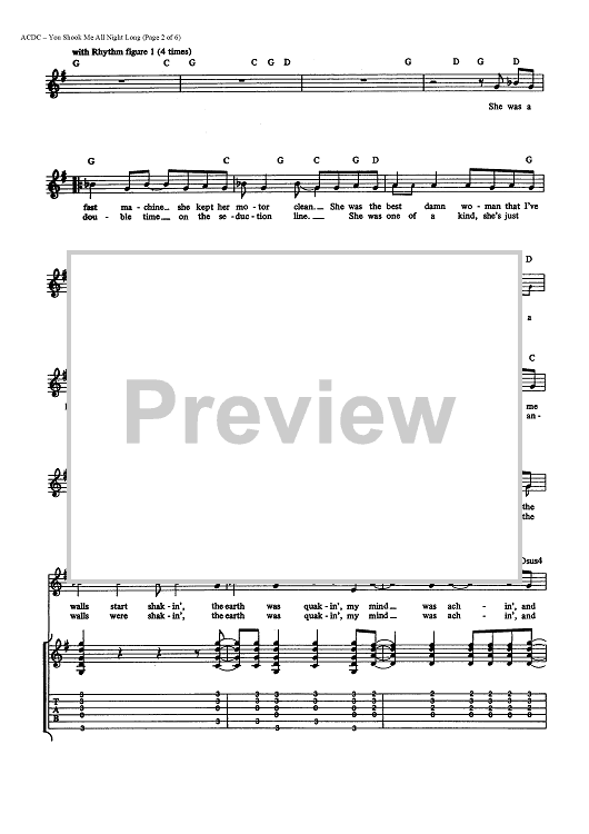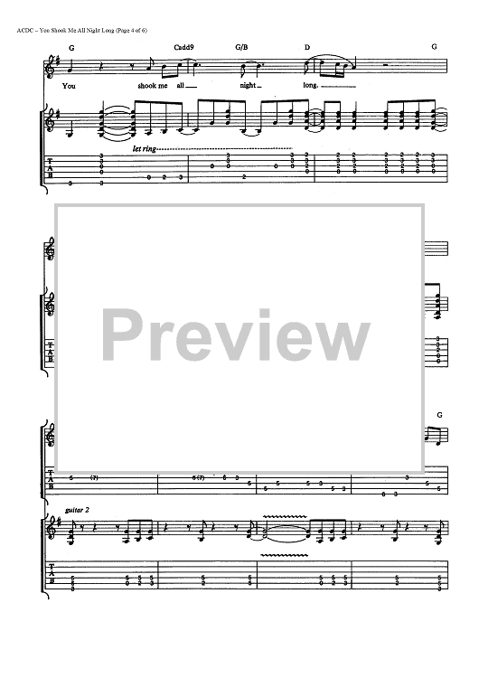 Digital Sheet Music for You Shook Me All Night Long by AC/DC, Brian Johnson, Angus Young, Malcolm Young scored for Guitar Tab/Vocal; id:437553