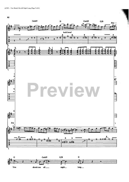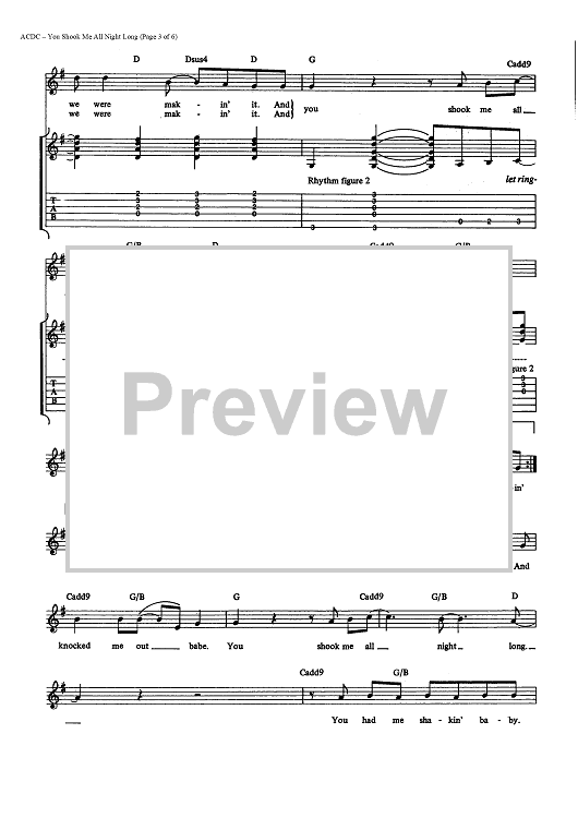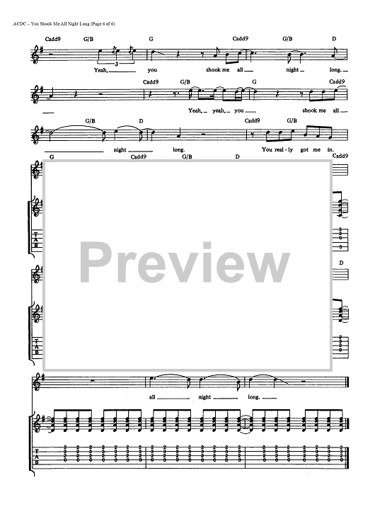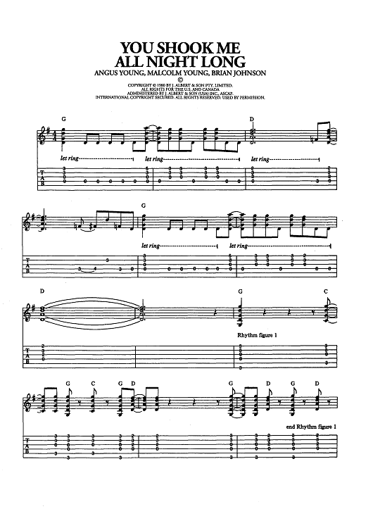 "You Shook Me All Night Long" Sheet Music by AC/DC