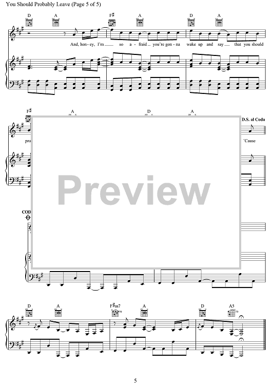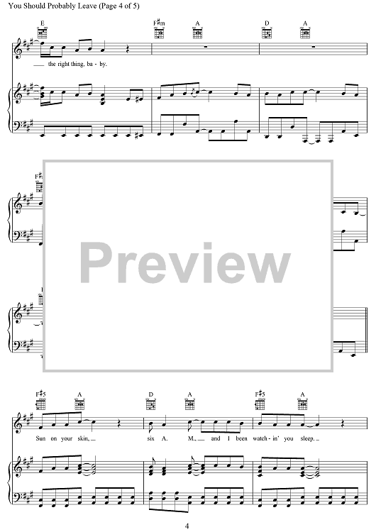 Digital Sheet Music for You Should Probably Leave by Ashley Gorley, Chris Dubois, Chris Stapleton scored for Piano/Vocal/Chords; id:496878