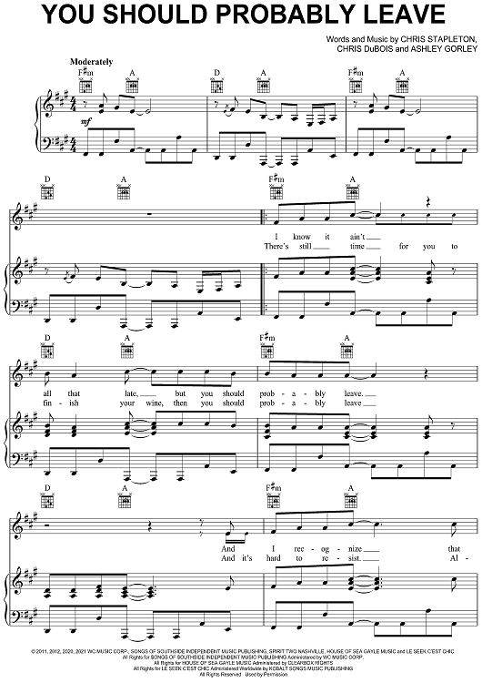 "You Should Probably Leave" Sheet Music by Chris Stapleton