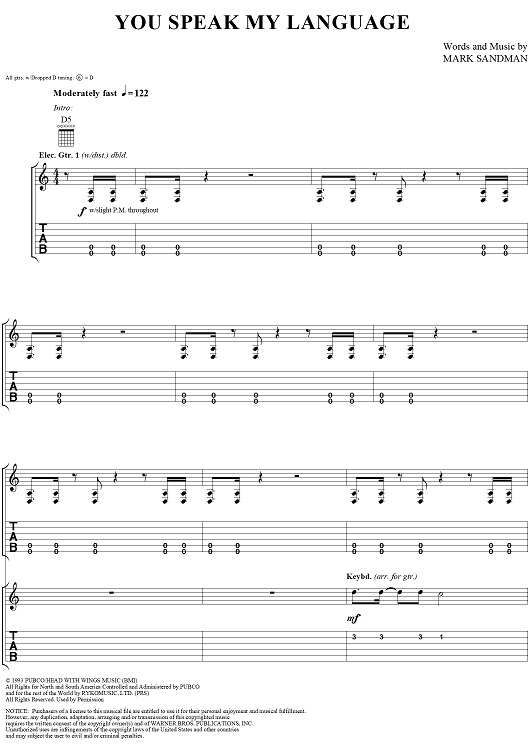 Digital Sheet Music for You Speak My Language by Collective Soul, Mark Sandman scored for Guitar Tab/Vocal; id:286844