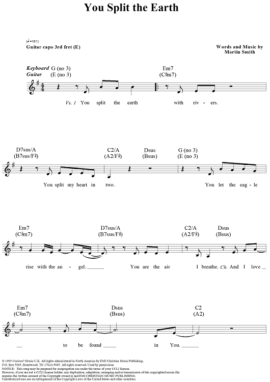 Digital Sheet Music for You Split the Earth by , Martin Smith, Delirious? scored for Lead Sheet; id:95854