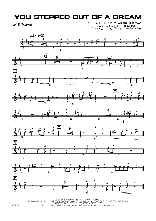 Digital Sheet Music for You Stepped Out of a Dream - B-flat Trumpet 1 by Nacio Herb Brown, Gus Kahn, Greg Yasinitsky scored for Jazz Ensemble; id:360449