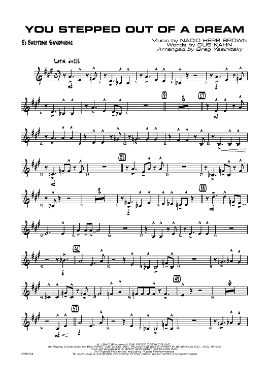 "You Stepped Out of a Dream - E-flat Baritone Saxophone" Sheet Music by Nacio Herb Brown