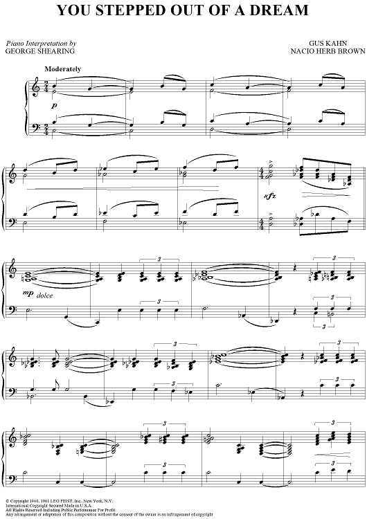 Digital Sheet Music for You Stepped Out Of A Dream by Nacio Herb Brown, Gus Kahn, George Shearing scored for Piano Solo; id:413661
