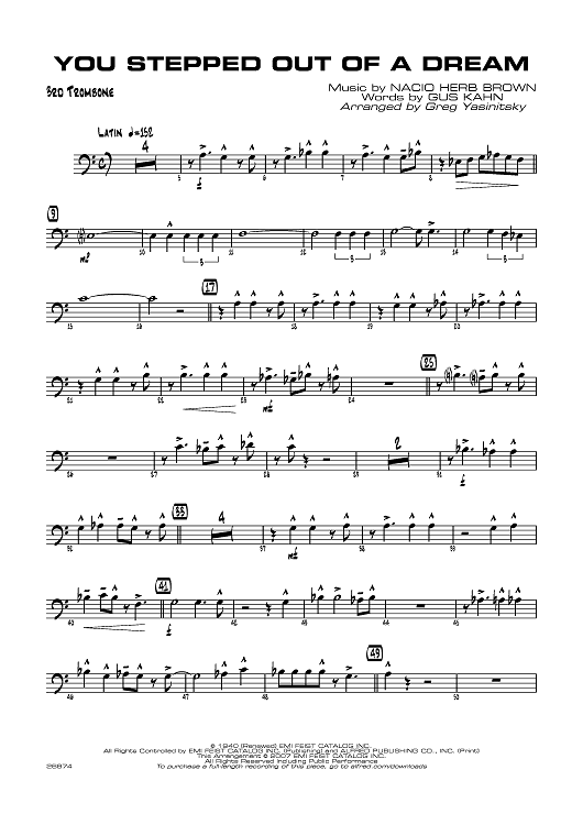Digital Sheet Music for You Stepped Out of a Dream - Trombone 3 by Nacio Herb Brown, Gus Kahn, Greg Yasinitsky scored for Jazz Ensemble; id:360455