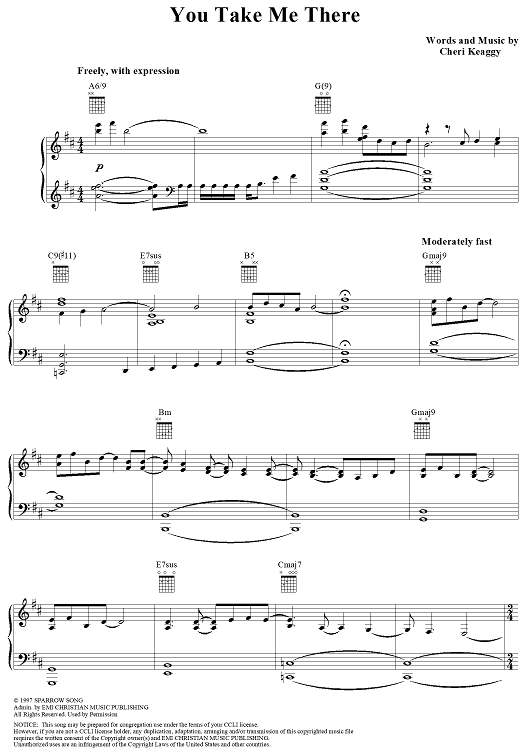 "You Take Me There" Sheet Music by Cheri Keaggy
