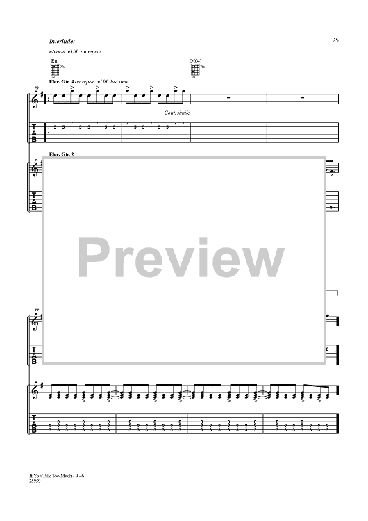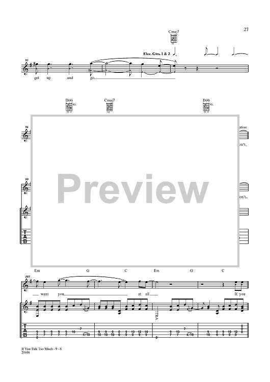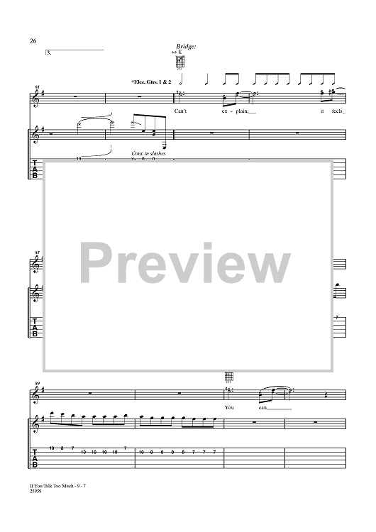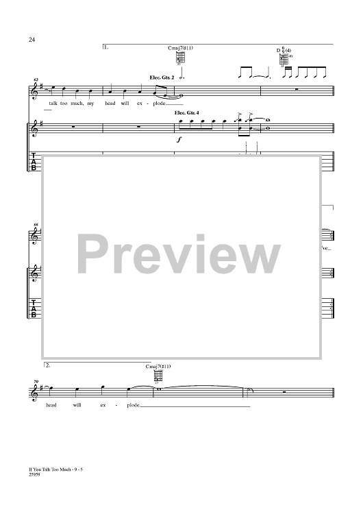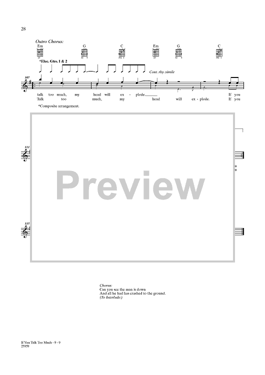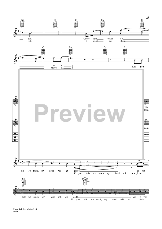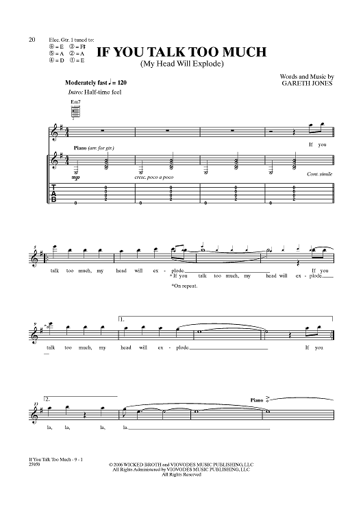 Digital Sheet Music for You Talk Too Much (My Head Will Explode) by People In Planes, Gareth Jones scored for Guitar Tab/Vocal; id:356830