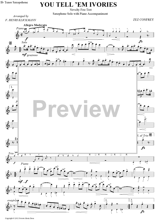 Digital Sheet Music for You Tell 'Em, Ivories - Bb Tenor Saxophone by , Zez Confrey, F. Henri Klickmann scored for Saxophone/Piano; id:427408