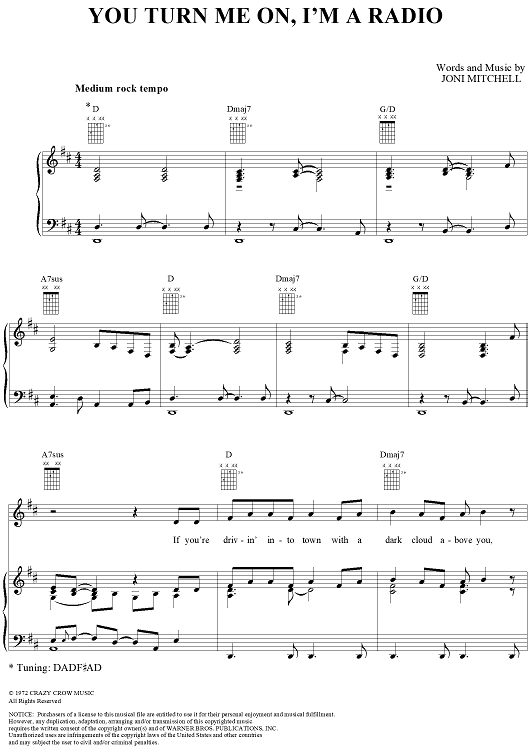 "You Turn Me On, I'm a Radio" Sheet Music by Joni Mitchell