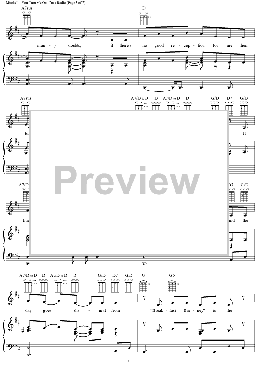 Digital Sheet Music for You Turn Me On, I'm a Radio by Joni Mitchell scored for Piano/Vocal/Chords; id:132896
