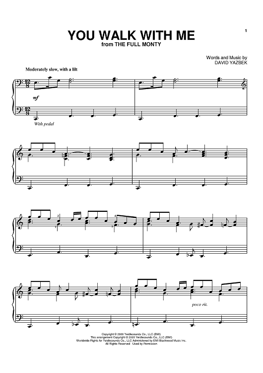 Digital Sheet Music for You Walk With Me by Full Monty, David Yazbek scored for Piano; id:373030