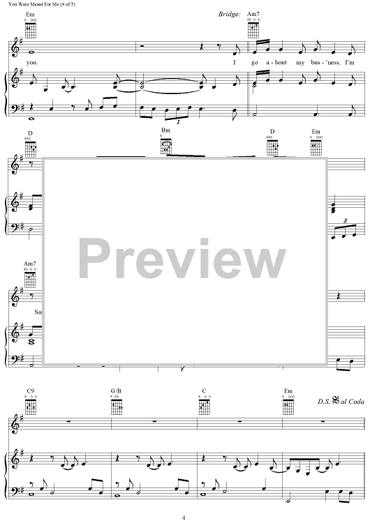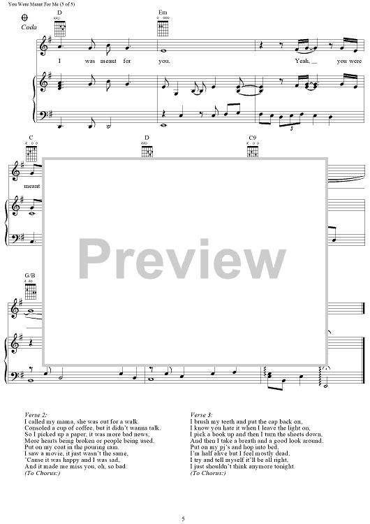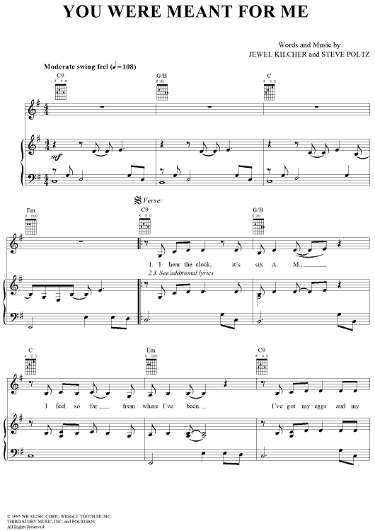 Digital Sheet Music for You Were Meant For Me by Jewel, Steve Poltz scored for Piano/Vocal/Chords; id:94764