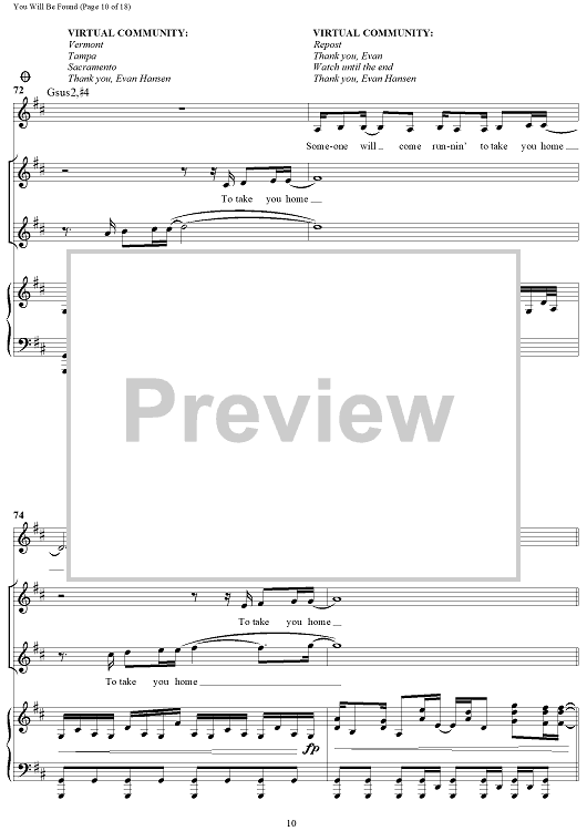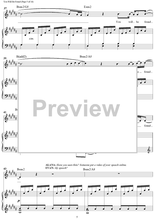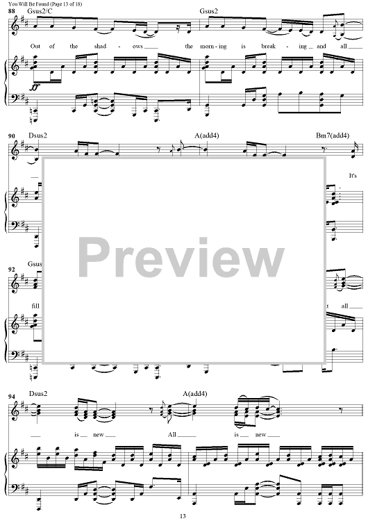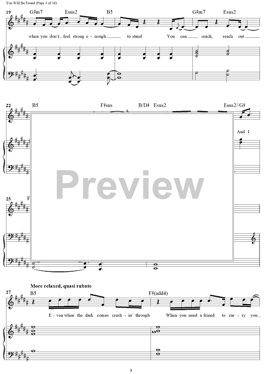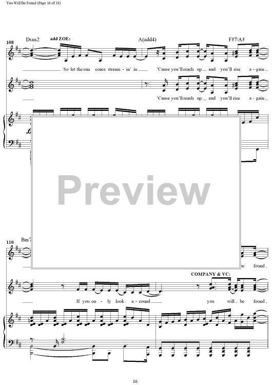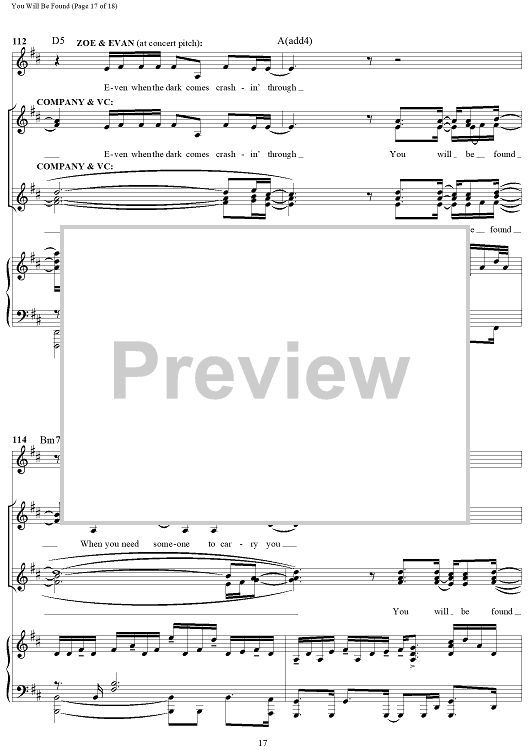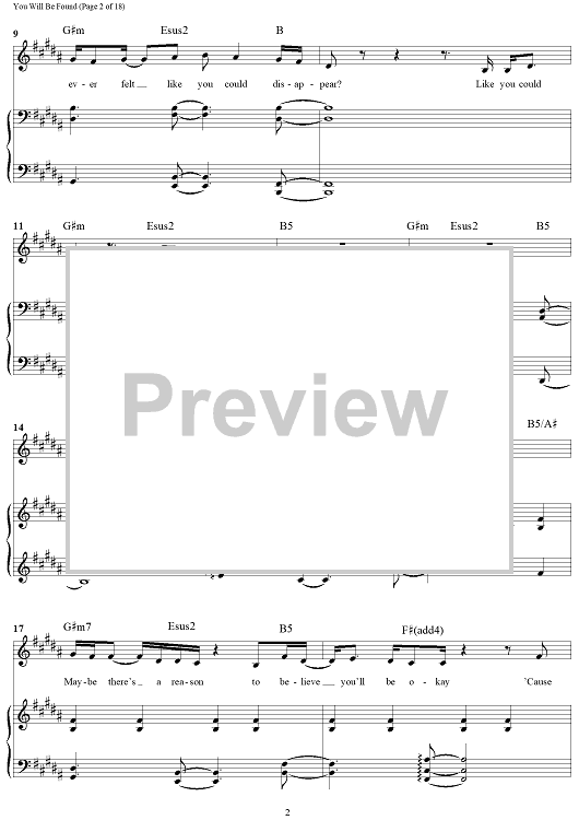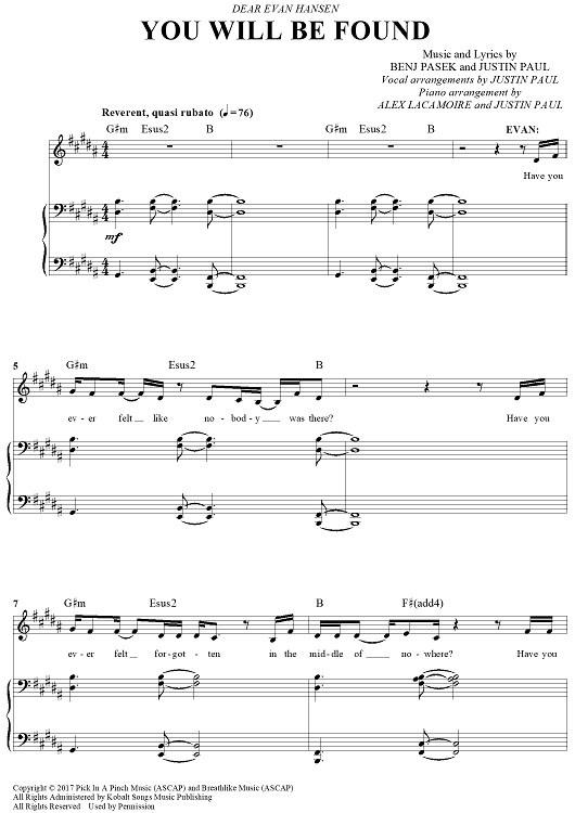 Digital Sheet Music for You Will Be Found - from Dear Evan Hansen by Benj Pasek, Justin Paul, Alex Lacamoire scored for Piano/Vocal/Chords; id:464987