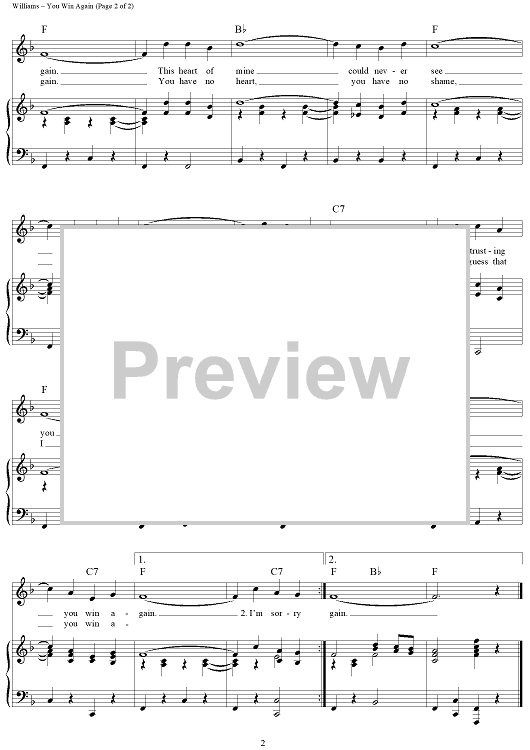 Digital Sheet Music for You Win Again by Hank Williams, Jerry Lee Lewis scored for Piano/Vocal/Chords; id:361900