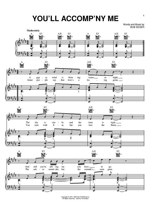 Digital Sheet Music for You'll Accomp'ny Me by Bob Seger scored for Piano/Vocal/Chords; id:370657