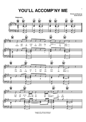 "You'll Accomp'ny Me" Sheet Music by Bob Seger