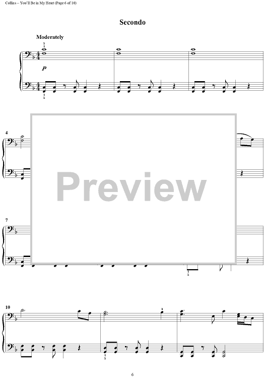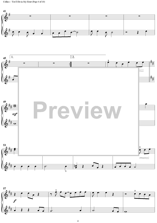 Digital Sheet Music for You'll Be in My Heart (Pop Version) by Phil Collins scored for 1 Piano, 4 Hands; id:370615