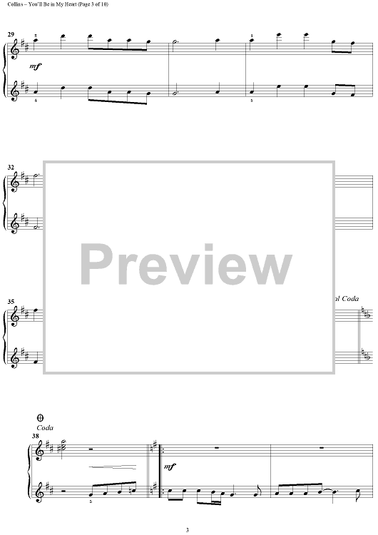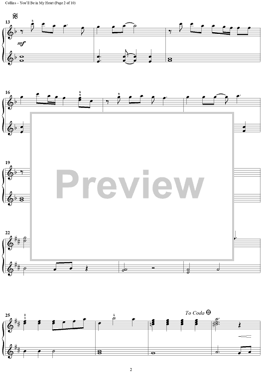 "You'll Be in My Heart (Pop Version)" Sheet Music by Phil Collins