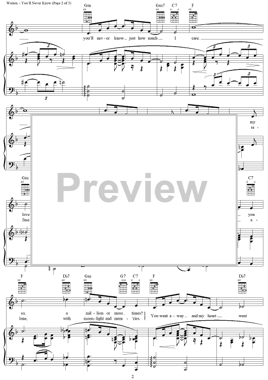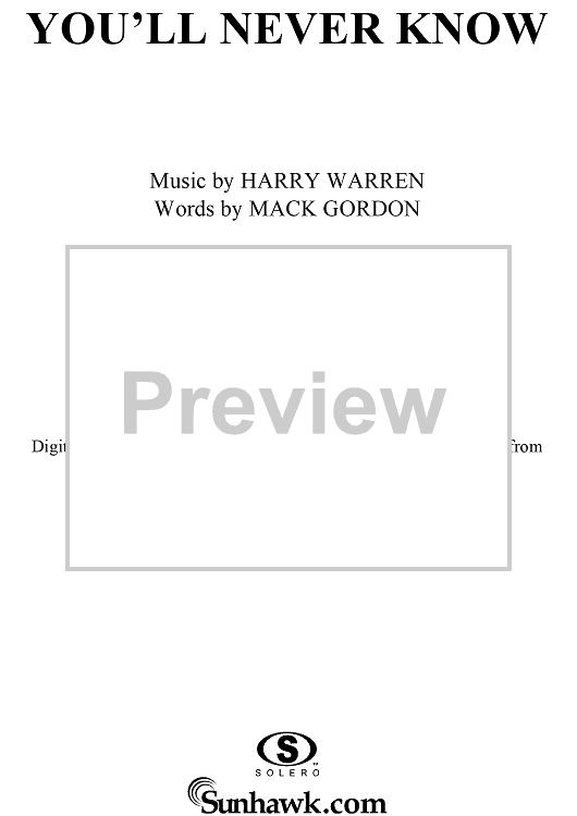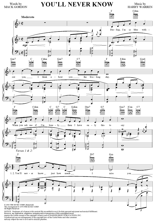 Digital Sheet Music for You'll Never Know by Frank Sinatra, Harry Warren, Mack Gordon, Dick Haymes, Rosemary Clooney, Michael Buble, Alice Faye, Trini Lopez, Barbra Streisand, Shirley Bassey scored for Piano/Vocal/Chords; id:286129