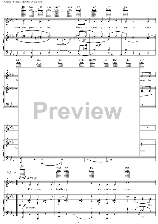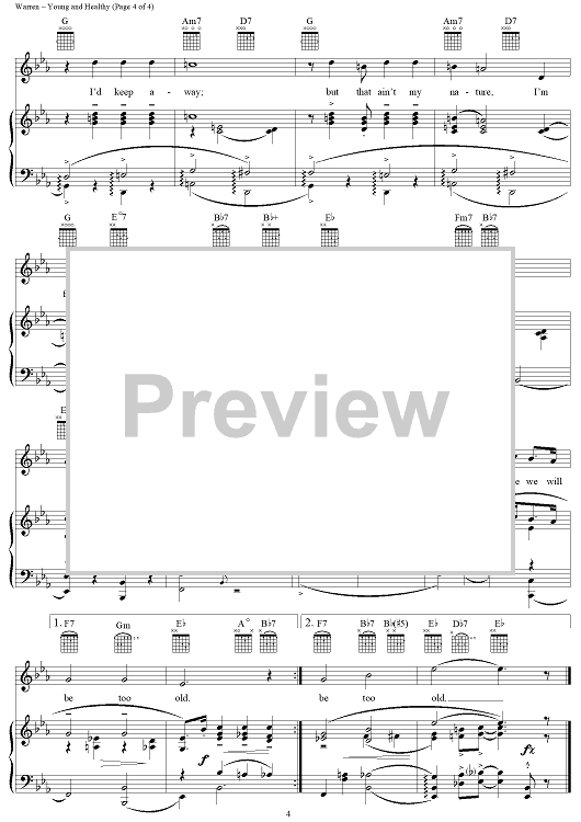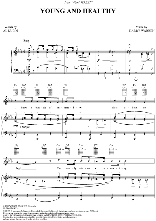 Digital Sheet Music for Young and Healthy by Harry Warren, Al Dubin scored for Piano/Vocal/Chords; id:120810