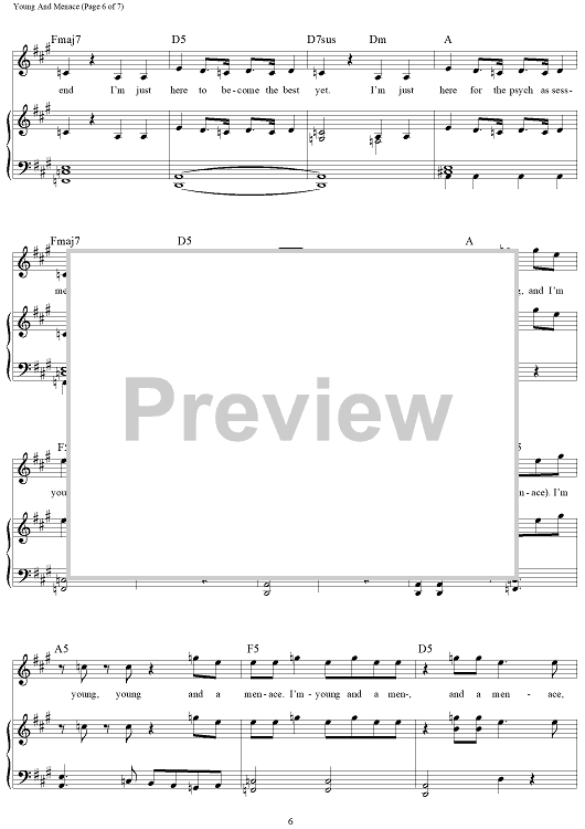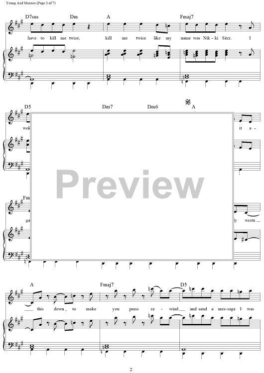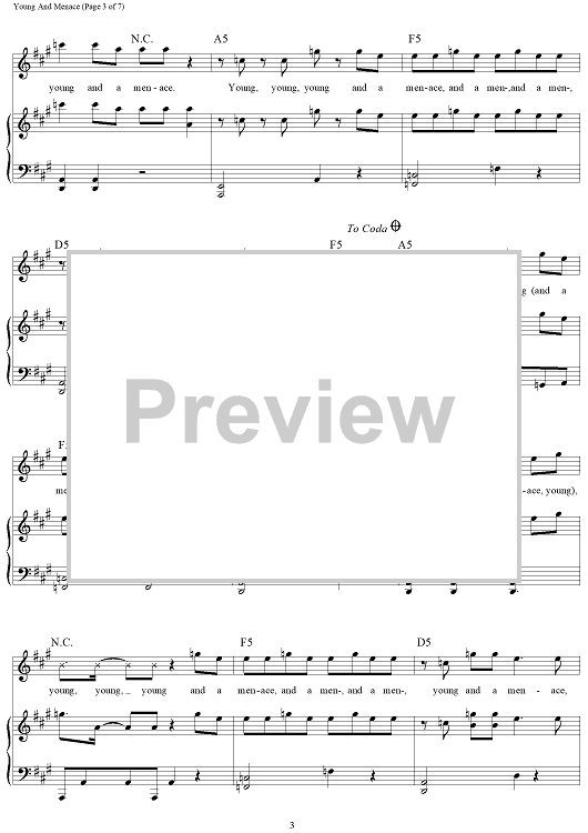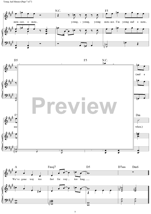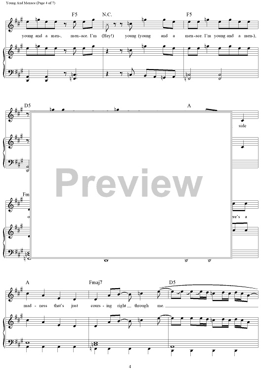Digital Sheet Music for Young And Menace by Patrick Stump, Peter Wentz, Andrew John Hurley, Joseph Trohman, Fall Out Boy scored for Piano/Vocal/Chords; id:464692