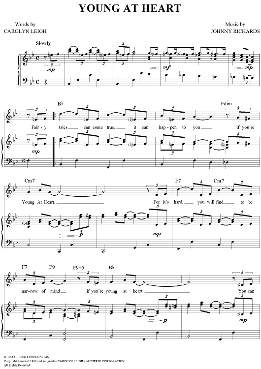 Digital Sheet Music for Young At Heart by Frank Sinatra, Carolyn Leigh, Johnny Richards scored for Piano/Vocal/Chords; id:110049