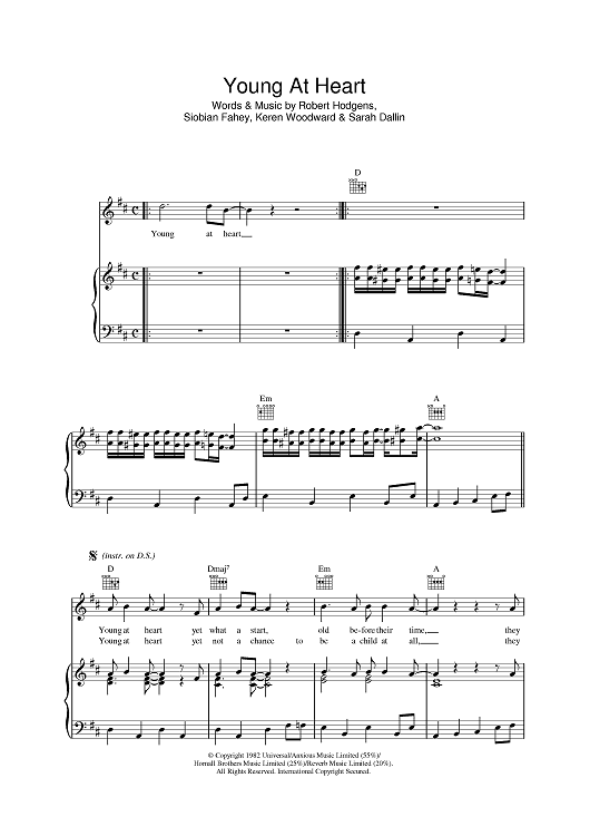 Digital Sheet Music for Young At Heart by Siobhan Fahey, Bananarama, Robert Hodgens, Bobby Valentino scored for Piano/Vocal/Chords; id:398727