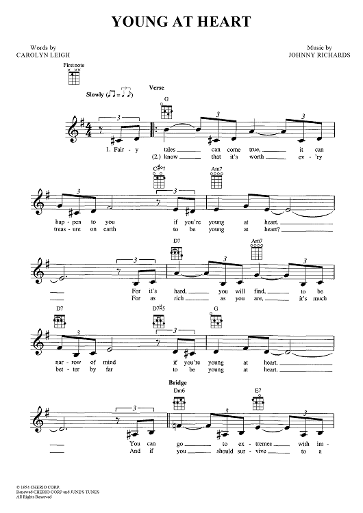 Digital Sheet Music for Young at Heart by Frank Sinatra, Carolyn Leigh, Johnny Richards scored for Ukulele/Vocal; id:447697