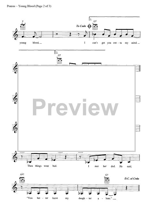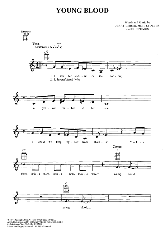 Digital Sheet Music for Young Blood by Jerry Leiber, Mike Stoller, The Coasters, Doc Pomus scored for Ukulele/Vocal; id:447703
