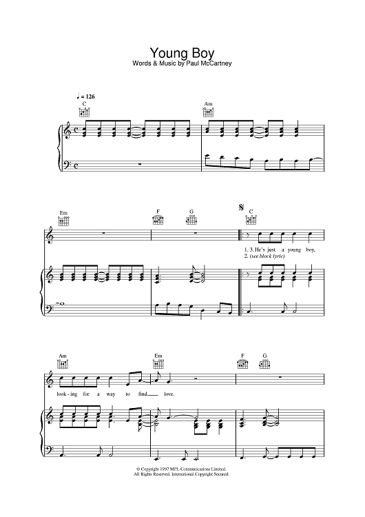 Digital Sheet Music for Young Boy by Paul McCartney scored for Piano/Vocal/Chords; id:389209