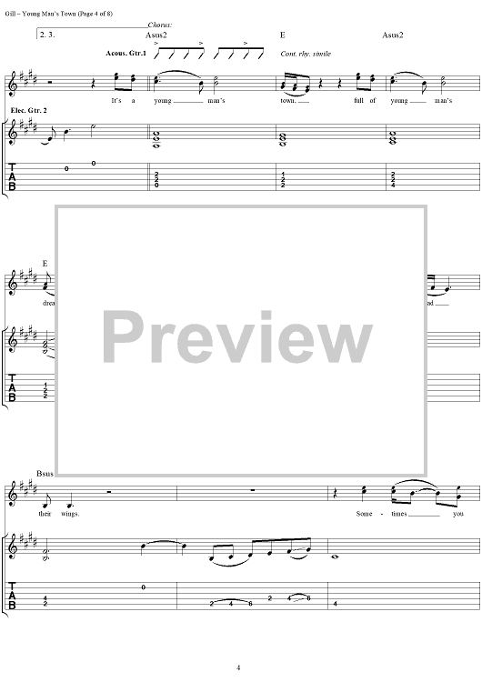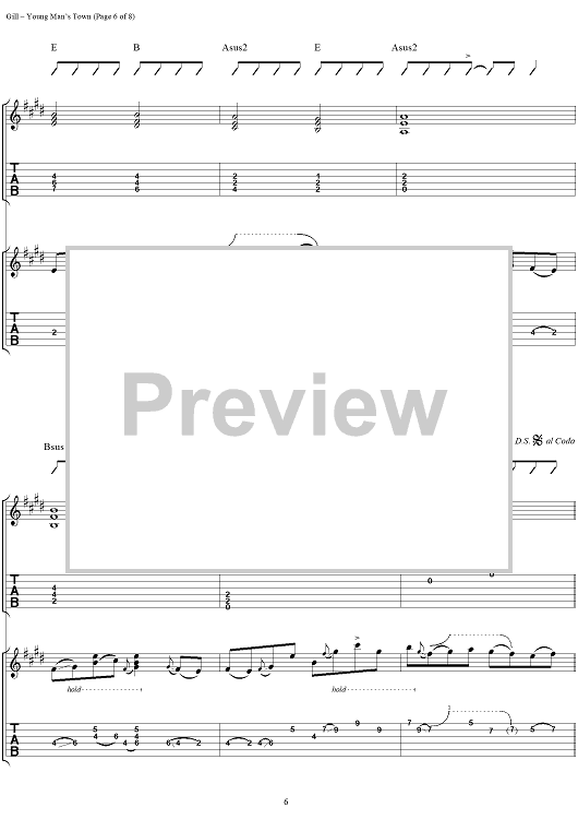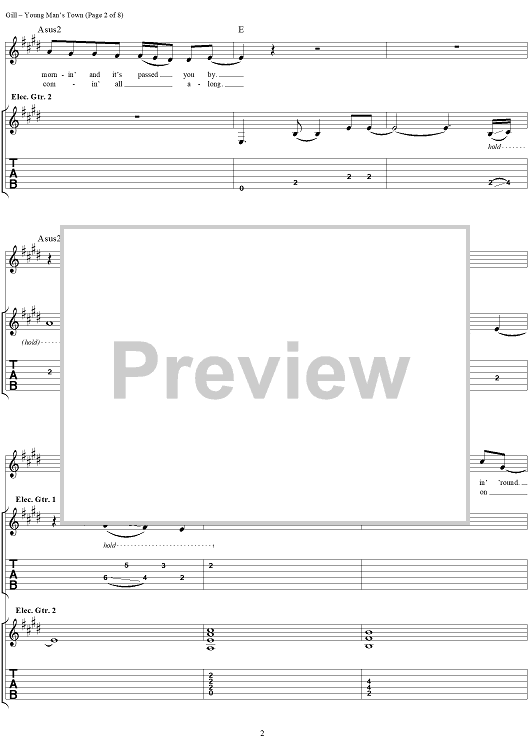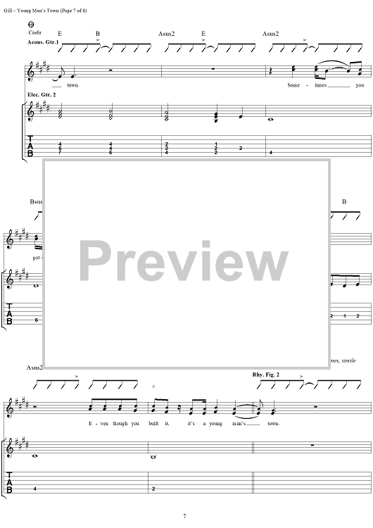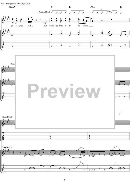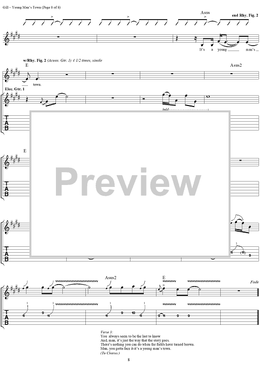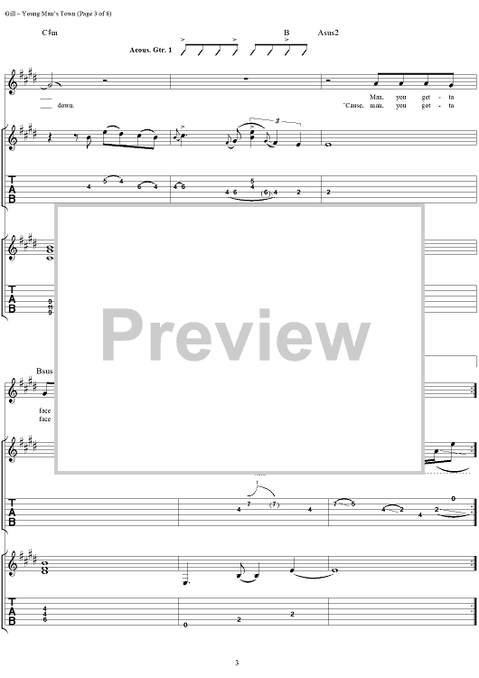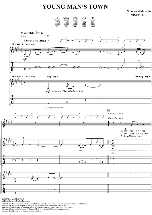 Digital Sheet Music for Young Man's Town by Vince Gill scored for Guitar Tab/Vocal; id:293510